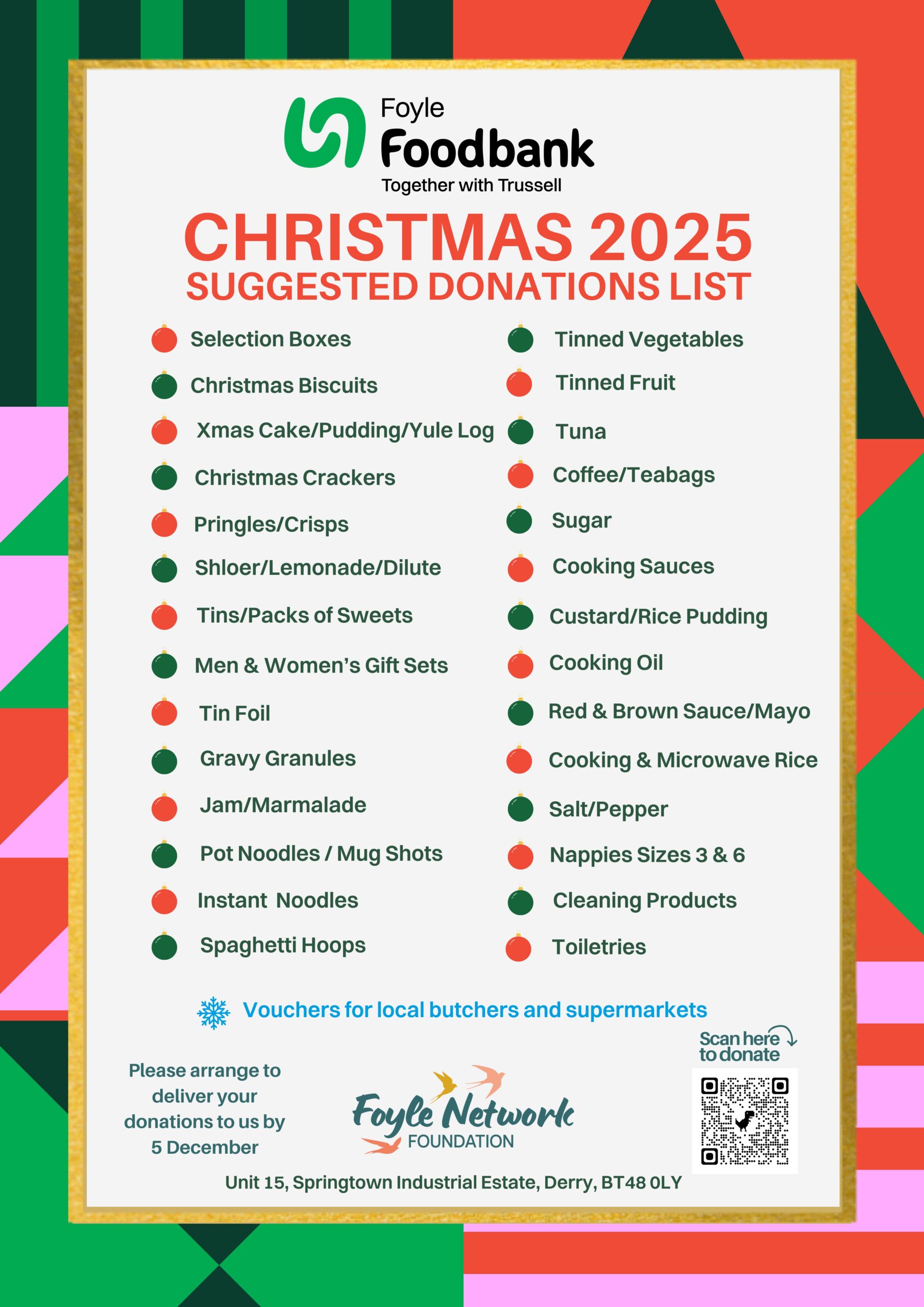 “Without the work of the team at Foyle Network Foundation, the community would be facing even more hardship. If you can support their work, visit their website to find out what food they are most in need of at this time.”
